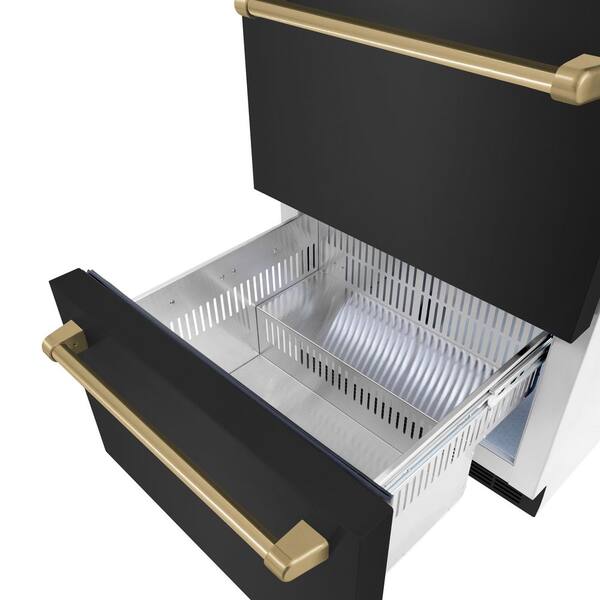 Touchstone 24 in. 4.6 cu. ft. Drawer Refrigerator with Black Stainless Steel Doors and Champagne Bronze Handles