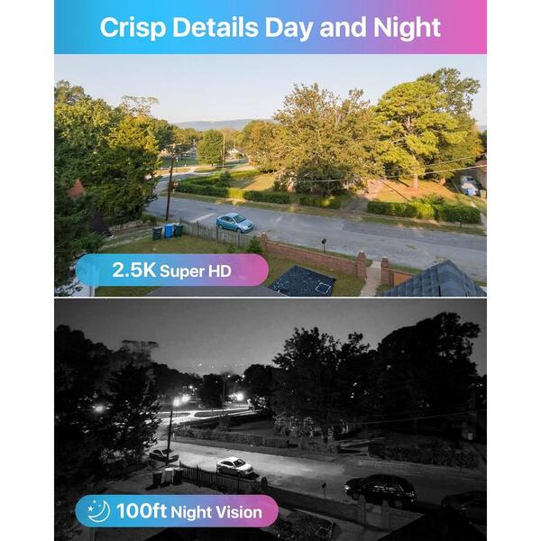 • 2.5K 4MP super QHD, night vision up to 100 ft.