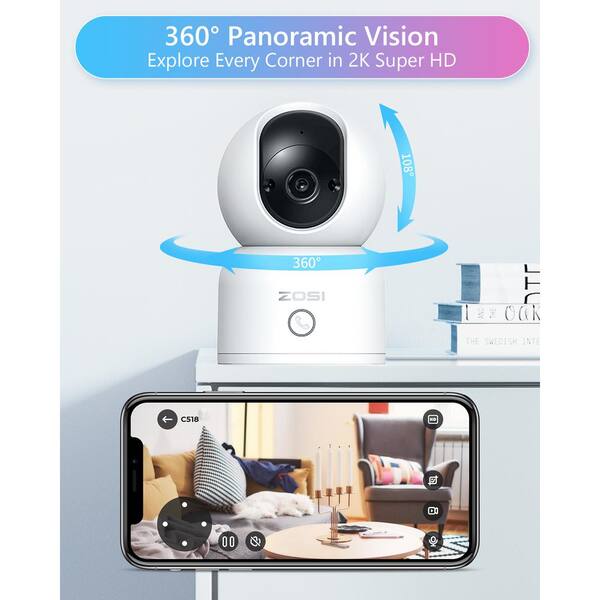 3MP 2K PTZ WiFi Plug-in Security Camera Baby Monitor, One Press Call, 2-Way Audio, Smart AI Detection, 2.4/5GHZ- 2 Packs