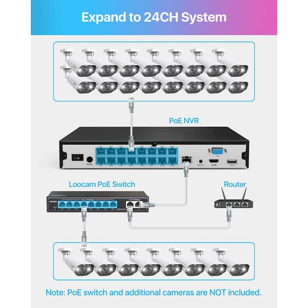 4K UHD 16-Channel (Up to 24CH) 4TB POE NVR Surveillance System with 6 Wired 8MP Outdoor Bullet Cameras