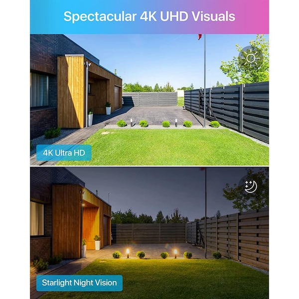 4K UHD 8-Channel 2TB PoE NVR Security Camera System with 8 8MP Wired Black Spotlight Cameras, Person Vehicle Detection