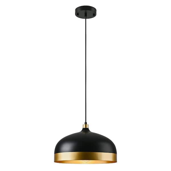 1-Light Black Modern Pendant Light with Metal Dome Shade