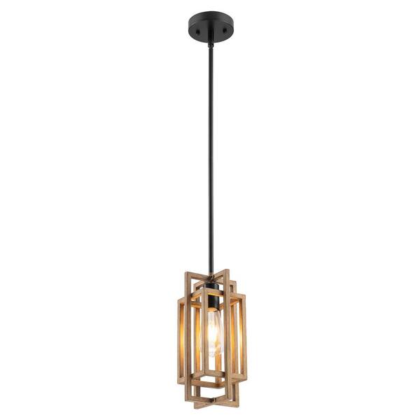 1-Light Farmhouse Metal Wood Grain Geometric Pendant Light for Kitchen Island