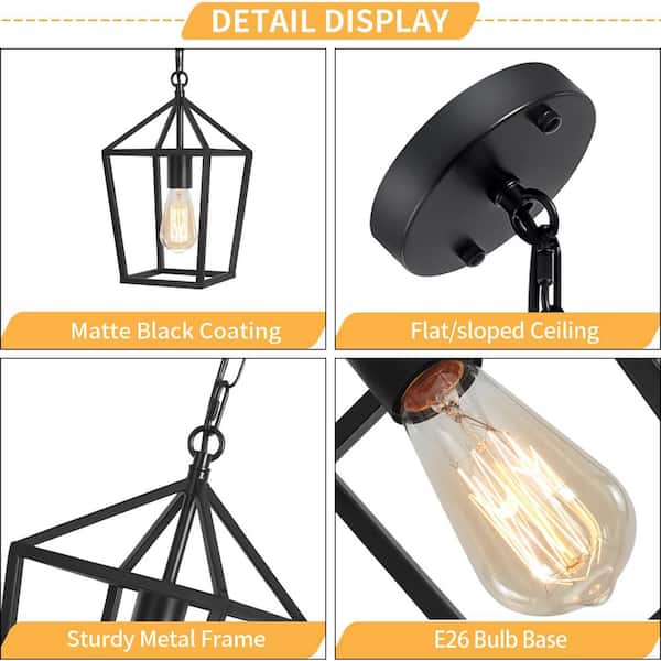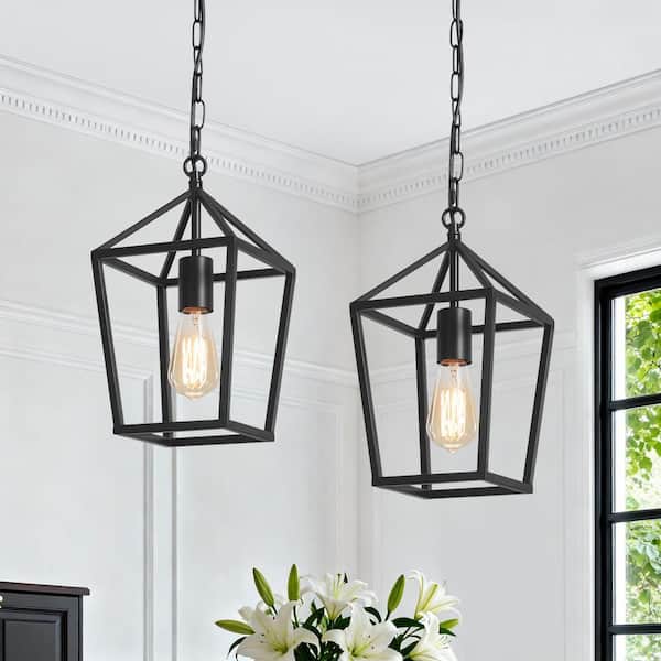 2-Light Black Modern Farmhouse Cage Lantern Pendant Light