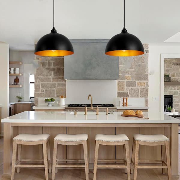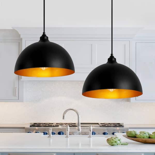 2-Light Black Modern Pendant Light with Metal Dome Shade