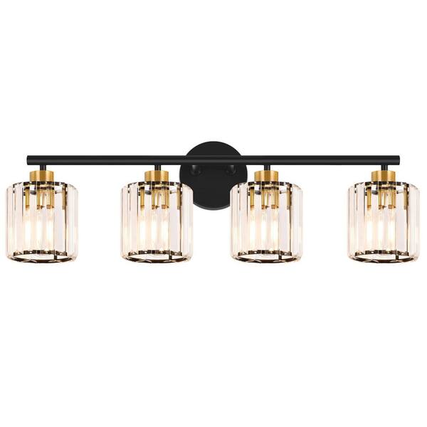 27 in. 4-Light Black and Gold Bathroom Vanity Light with Crystal Shades