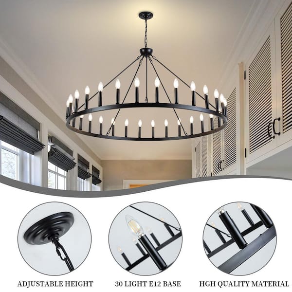 30-Light Black Wagon Wheel Chandelier for Farmhouse Kitchen Island with No Bulbs Included
