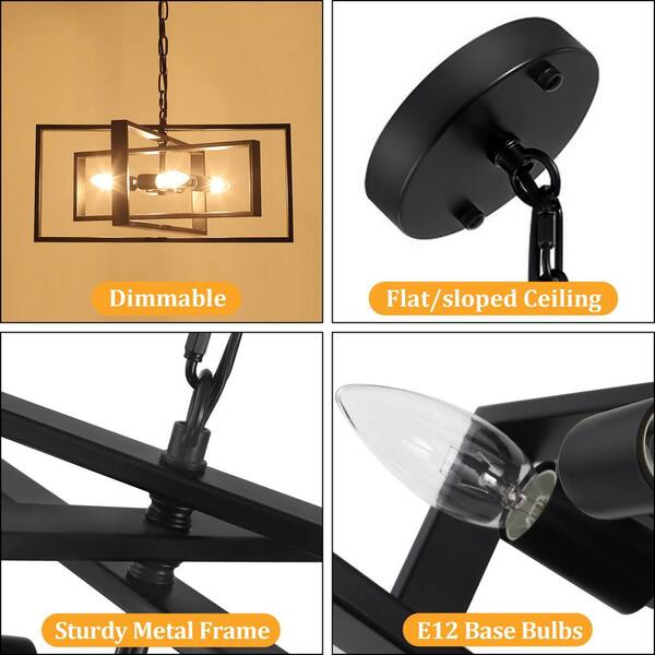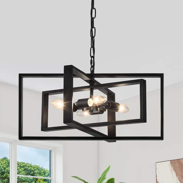 4-Light Black Farmhouse Square / Rectangle Chandelier for Living Room Foyer Kitchen Island