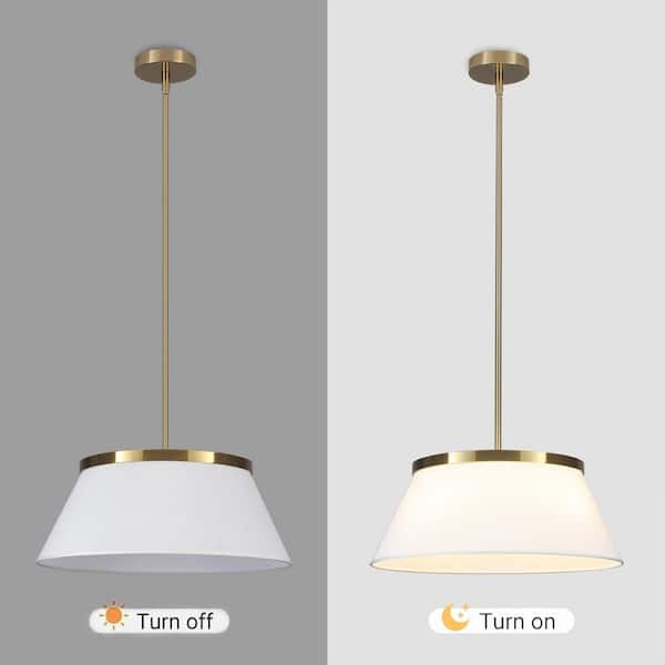4-Light Vintage Gold Pendant Light with White Linen Fabric Shade
