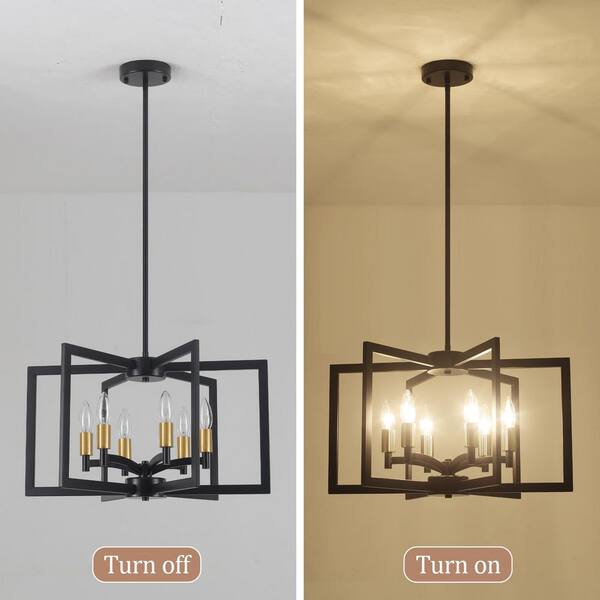 6-Light Black and Gold Candle-Style Geometric Square / Rectangle Chandeliers for Kitchen Island with No Bulbs Included