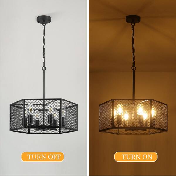 6-Light Modern Black Metal Drum Chandelier for Kitchen Island with no bulbs included