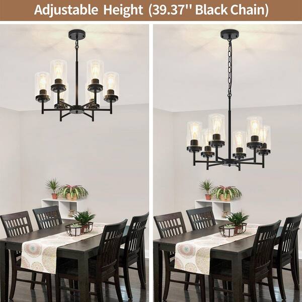 6-Light Modern Farmhouse Black Chandelier with Clear Glass Shade for Kitchen Island Dining Room