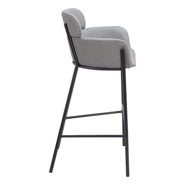 Bremor 29.7 in. Solid Back Slate Gray Wood Frame Barstool with Faux Leather Seat