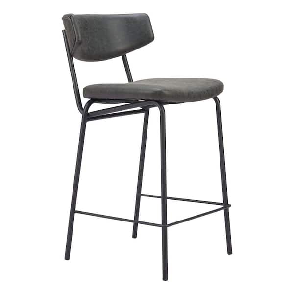 Charon 30.3 in. Open Back Black Plywood Frame Counter Stool with Faux Leather Seat - (Set of 2)