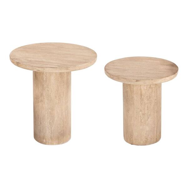 Fenith 18.1 in.W Natural 18.1 in.H Round Stone Travertine Top End Table