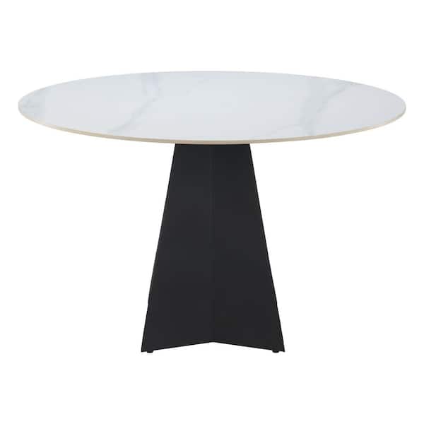 Izar 47.2 in. Round White Sintered Stone Top with Steel Frame and Pedestal Base Dining Table (Seats 4)