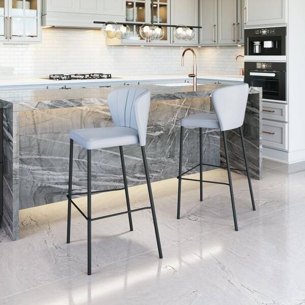 Linz 29.3 in. Solid Back Plywood Frame Barstool with Faux Leather Seat - (Set of 2)