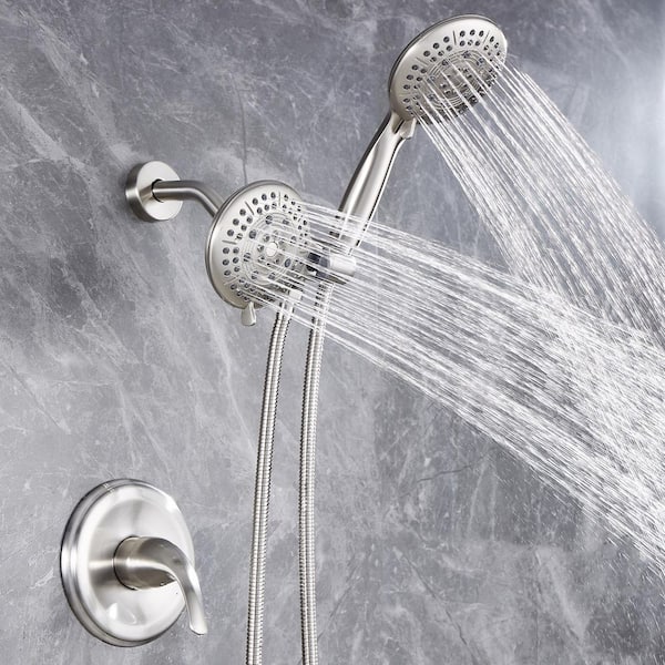 2 IN 1 Single-Handle 5-Spray Shower Faucet with 4.7 in. Wall Mount Dual Shower Heads in Brushed Nickel (Valve Included)