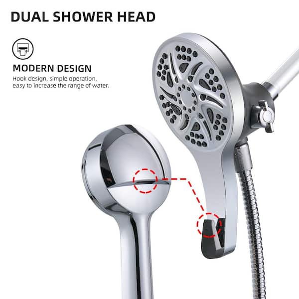 2-In-1 6-Spray Wall Mount 5 in. Dual Shower Head and Handheld Shower Head with 70 in. hose 2.5 GPM in Chrome