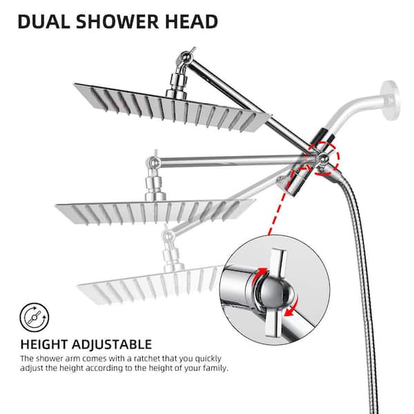 Rain Shower Head Combo 5-Spray 10 in. Wall Mount Dual Shower Heads and Handheld Shower Head with 2.5 GPM in Chrome