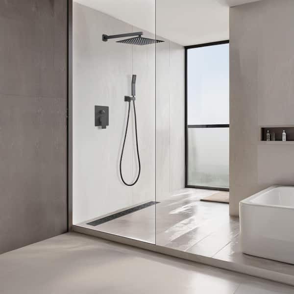 Rainfall 1-Spray Square 12 in. Shower System Shower Head with Handheld in Black (Valve Included)