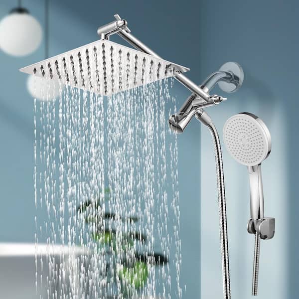 Rainfull 5-Spray Patterns 8 in. Wall Mount Dual Shower Heads and Handheld Shower Head in Chrome