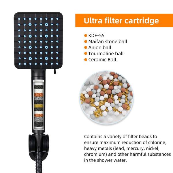 Rainfull 6-Spray 12 in. Wall Mount Dual Shower Head and Handheld Shower Head 1.8 GPM in Matte Black