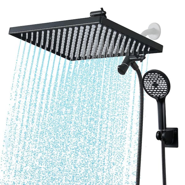 Rainfull 6-Spray 12 in. Wall Mount Dual Shower Head and Handheld Shower Head 1.8 GPM in Matte Black