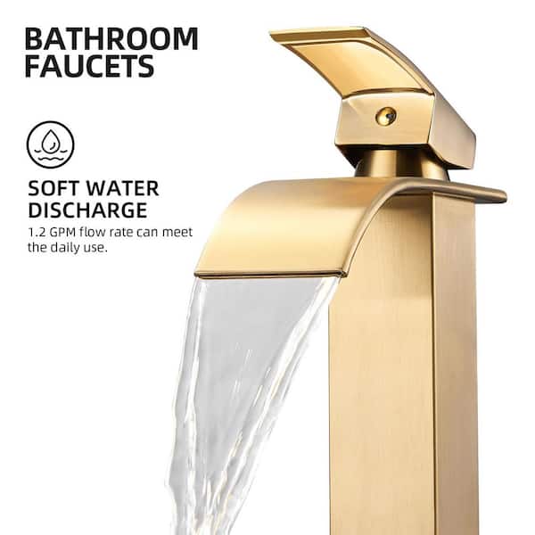 Waterfall Single Handle Single Hole Bathroom Faucet With Deckplate and Pop-Up Drain Assembly in Gold