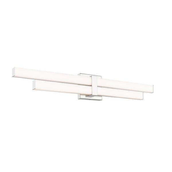 Zane 32 in. 2-Light Chrome Integrated LED Vanity Light with Frosted Plastic Shade