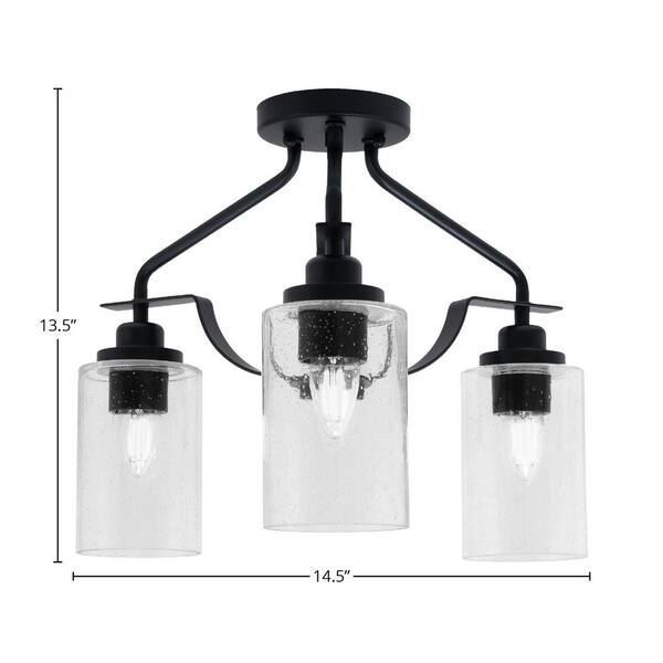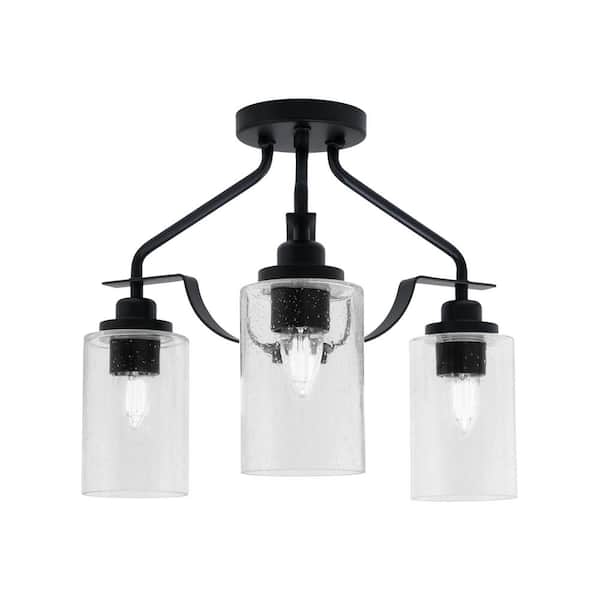 Zara 14.5 in. 3-Light Matte Black Semi-Flush with 4 in. Clear Bubble Glass Shades No Bulbs Included