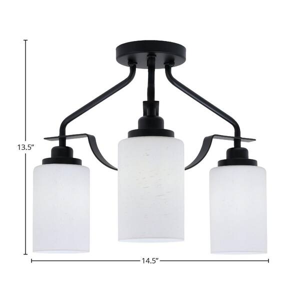 Zara 14.5 in. 3-Light Matte Black Semi-Flush with 4 in. White Muslin. Glass Shades No Bulbs Included