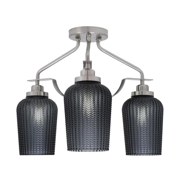 Zara 15.5 in. 3-Light Brushed Nickel Semi-Flush with 5 in. Smoke Textured Glass Shades No Bulbs Included