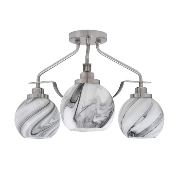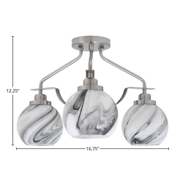 Zara 16.75 in. 3-Light Brushed Nickel Semi-Flush with 5.75 in. Onyx Swirl Glass Shades No Bulbs Included