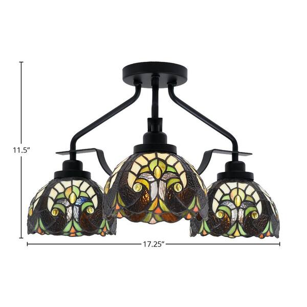 Zara 17.25 in. 3-Light Matte Black Semi-Flush with 7 in. Ivory Cypress Art Glass Shades No Bulbs Included