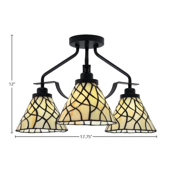 Zara 17.75 in. 3-Light Matte Black Semi-Flush with 7 in. Sandhill Art Glass Shades No Bulbs Included