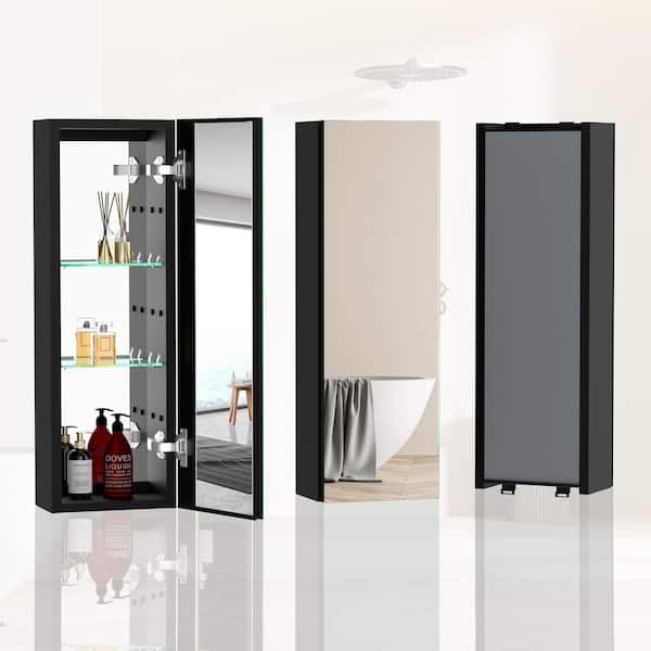 10 in. W x 30 in. H Modern Rectangular Black Aluminum Bathroom Medicine Cabinet with Mirror And Adjustable Glass Shelves