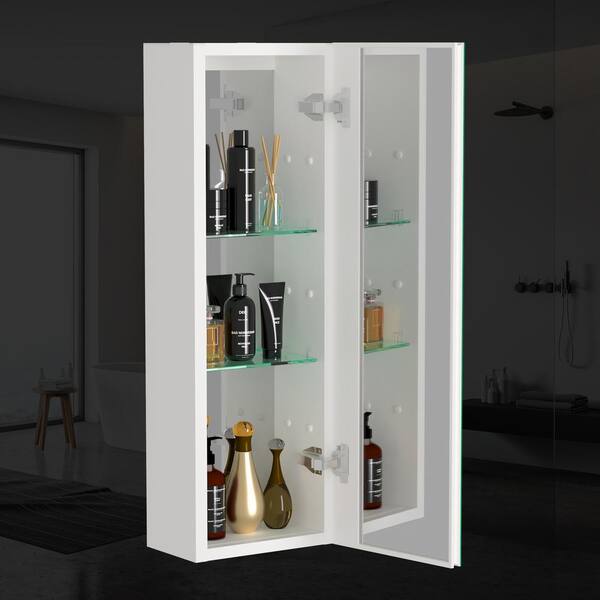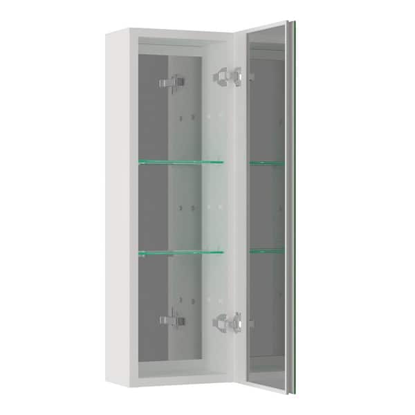 10 in. W x 30 in. H Rectangular White Waterproof Aluminum Bathroom Medicine Cabinet with Mirror And Glass Shelves