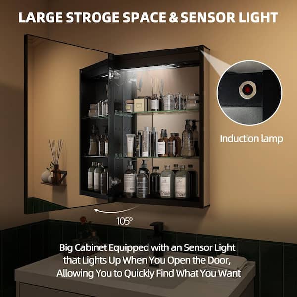 20 in. W x 30 in. H Recessed/Surface Mount Rectangular Black Lighted LED Medicine Cabinet with Mirror Outlet and USB