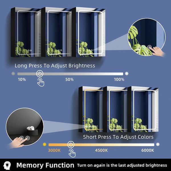 20 in. W x 30 in. H Surface Mount Rectangular Black Aluminum Defogging Lighted Bathroom Medicine Cabinet with Mirror