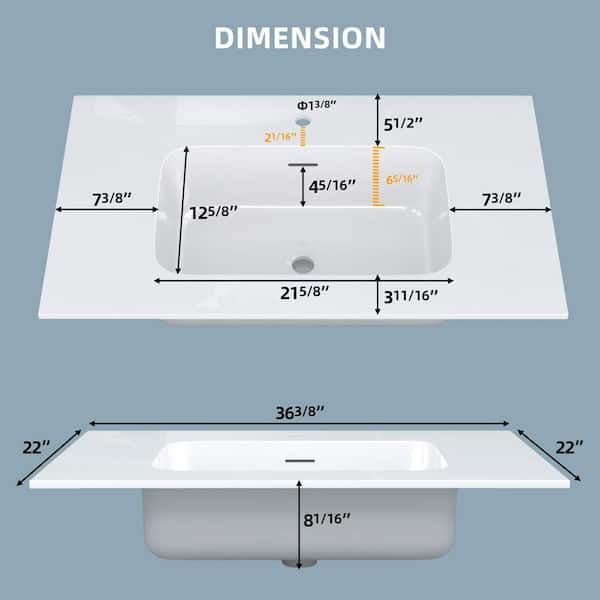 36 in. W x 22 in. D Solid Surface Cultured Marble White Single Sink Bathroom Vanity Top Rectangular Basin Countertop