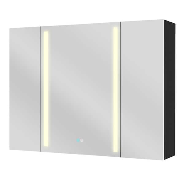40 in. W x 30 in. H Rectangular Black Aluminum Surface Mount LED Lights Bathroom Medicine Cabinet with Mirror & Defogger