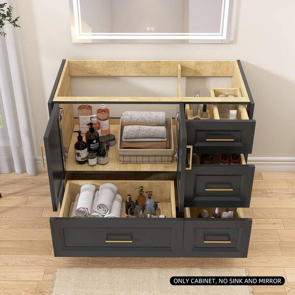 42 in. W x 21.5 in. D x 33.5 in. H Solid Wood Left Sink Bath Vanity Cabinet without Top in Charcoal Gray Assembled