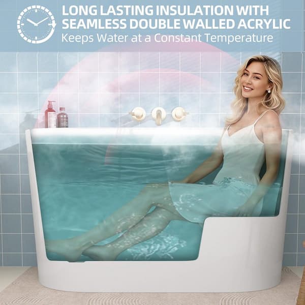 47 in. Acrylic Japanese Soaking Tub with Built-In Seat Deep Compact Freestanding Bathtub with Pop-Up Drain in White