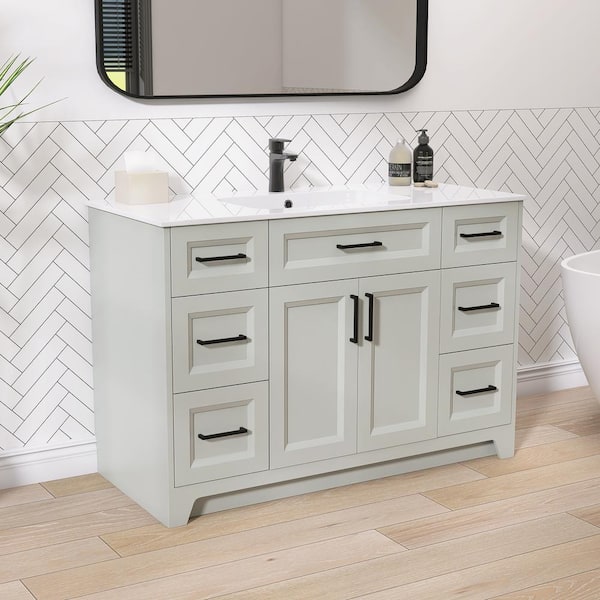 48 in. Single Sink Freestanding Light Gray Bath Vanity with Solid Surface White Top & Sink Solid Wood Cabinet Assembled