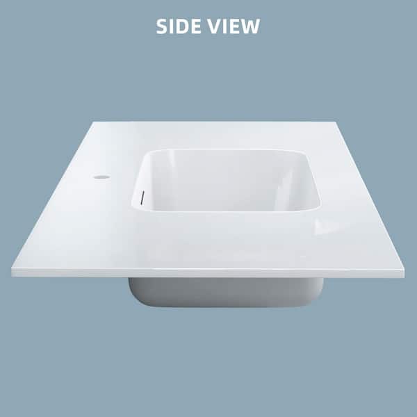48 in. W x 22 in. D Solid Surface Cultured Marble White Bathroom Vanity Top with Single Sink White Rectangular Basin