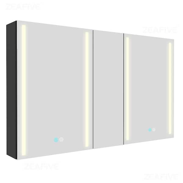 50 in. W x 30 in. H Rectangular Aluminum Medicine Cabinet with Mirror and Lights Defogger Black Surface Mount Bathroom