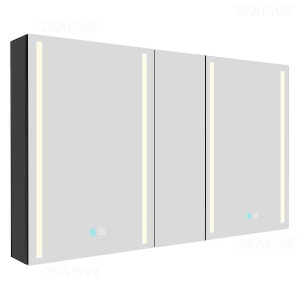 50 in. W x 30 in. H Rectangular Black Aluminum Surface Mount Lighted Bathroom Medicine Cabinet with Mirror and Defogger