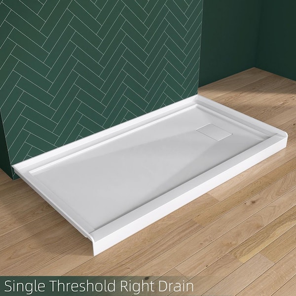 60 in. L x 32 in. W Alcove Single Threshold Acrylic Shower Pan Base with Right Drain and Cover Bathroom Tray in White