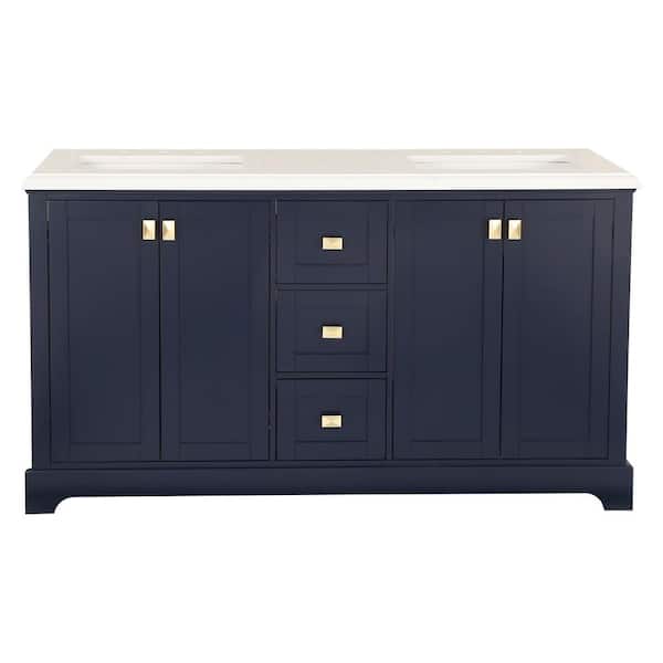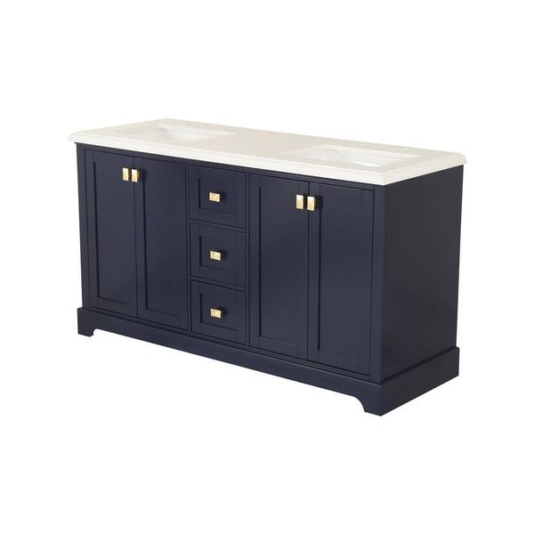 60 in. W x 22 in. D x 34. in. H Double Sink Freestanding Bath Vanity in Navy Blue with White Granite Top Bathroom Vanity
